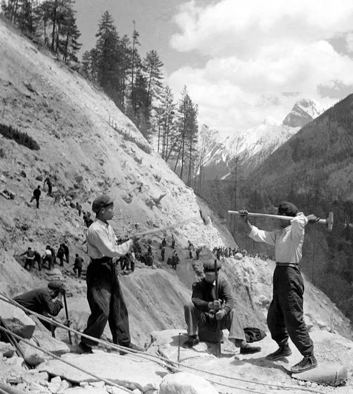 康藏公路施工老照片。