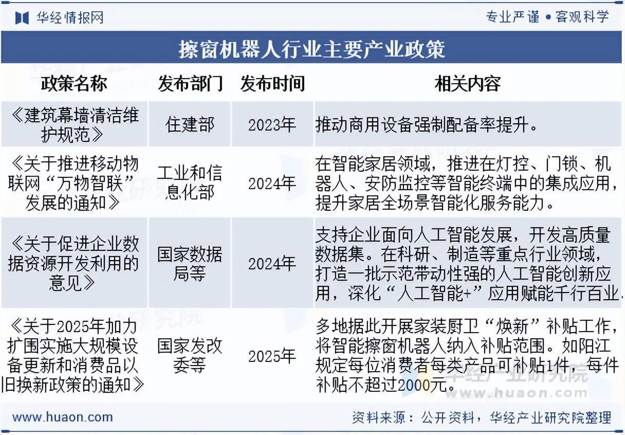 本文节选自华经产业研究院发布的《2025年中国擦窗机器人(自动擦窗机)行业现状分析及前景展望,行业规范的建立为行业注入长期增长动能「图」》,如需获取全文内容,可进入华经情报网搜索查看。